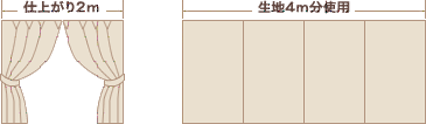 仕上がりがカーテン巾の約2倍の生地を使用しています。