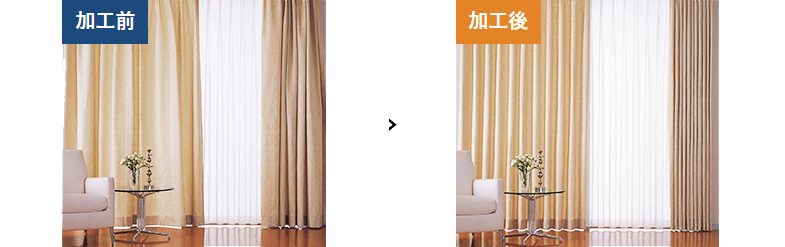 形態安定プレス加工を施すと、型くずれやシワが出来にくくなり、吊るすだけで美しいドレープを長期間お楽しみ頂けます。薬品を使わない高温特殊加工なので、お子様やペットにも安心です。 カーテンを閉めている時だけでなく、開いている時も綺麗に畳まれるので、見栄えが断然、よくなります