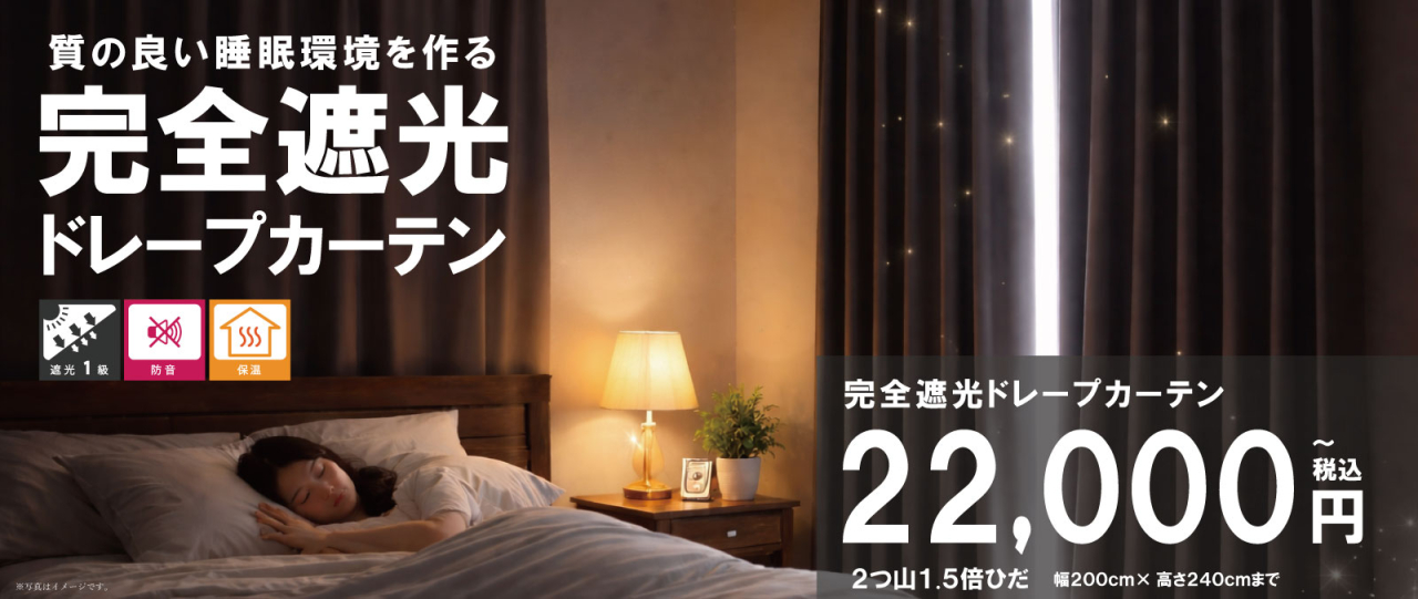 遮光カーテンは外からの光を入れにくく、また内側の明かりも外に漏らしにくくなります。遮光には1~3まで等級があり、1級が最も光を遮る等級になり、2、3級と徐々に光量が多くなります。