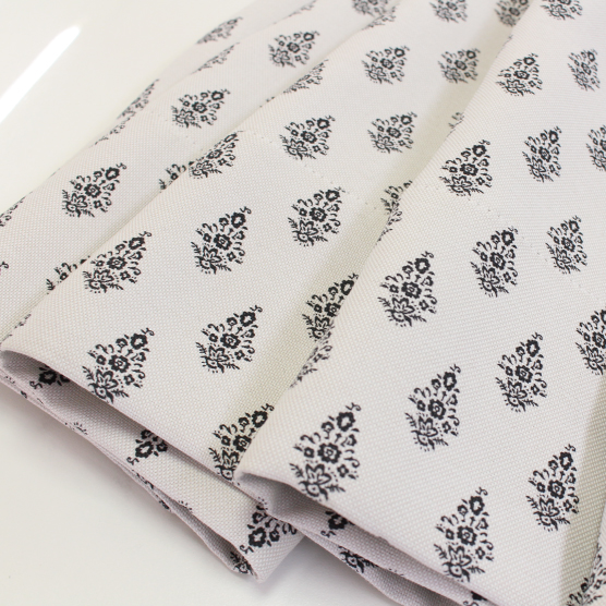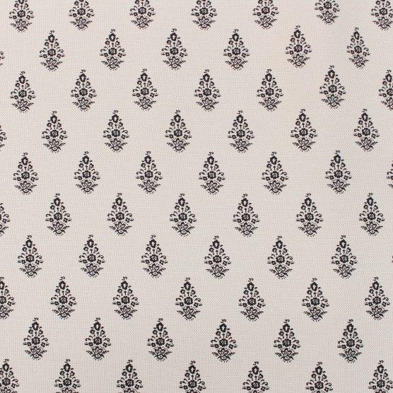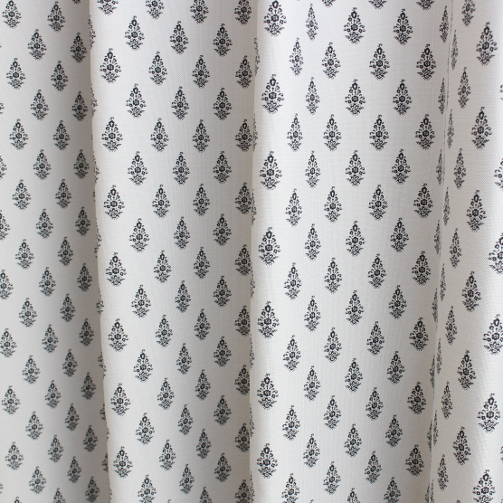 小花が散りばめられた南仏風の遮光2級カーテン。色はホワイト・ベージュ・ブルーの3色展開でそれぞれの色ごとに特有の雰囲気を演出。