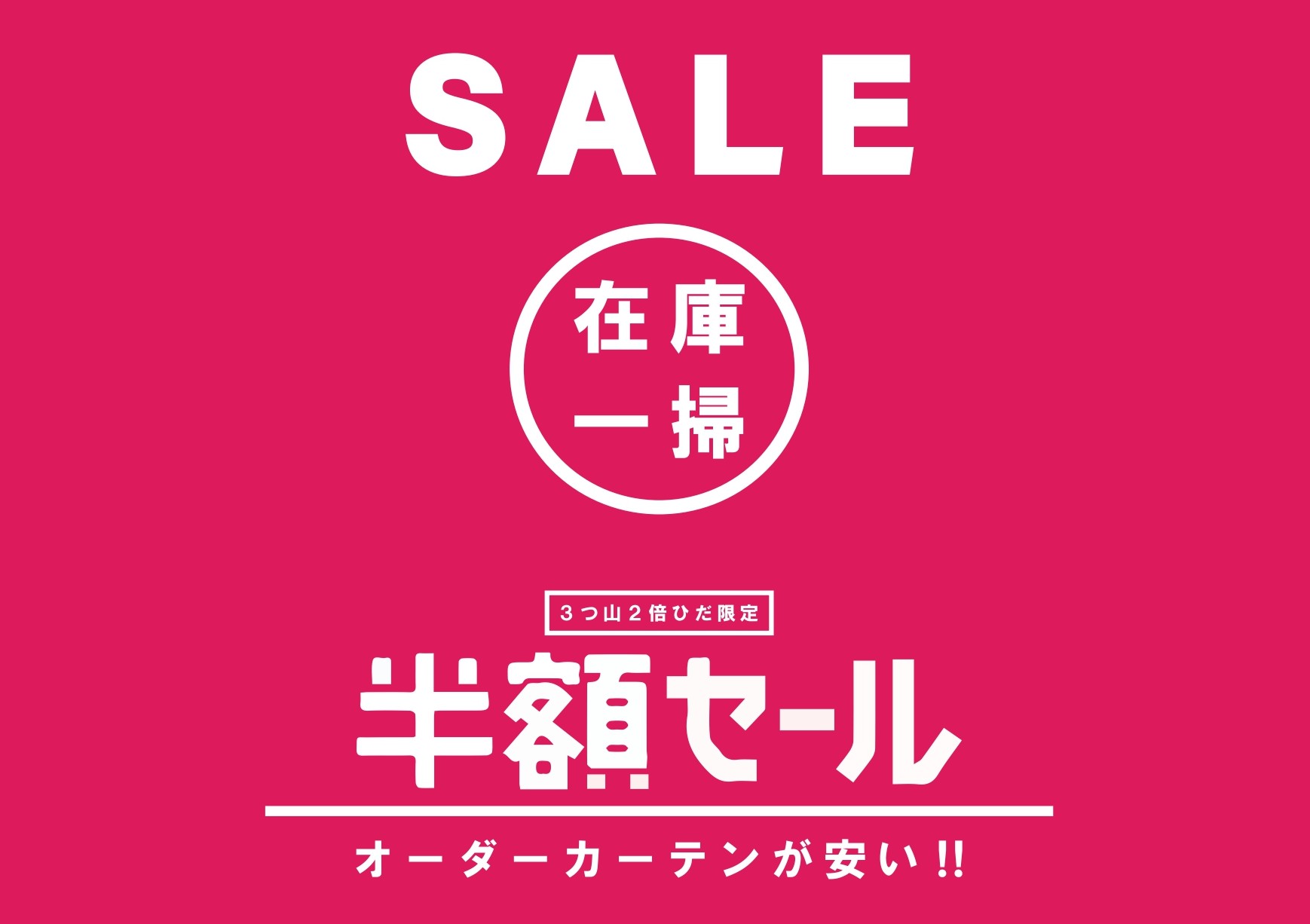 店内対象生地(ドレープ・レース)200点以上から選べる、半額セールとなります。